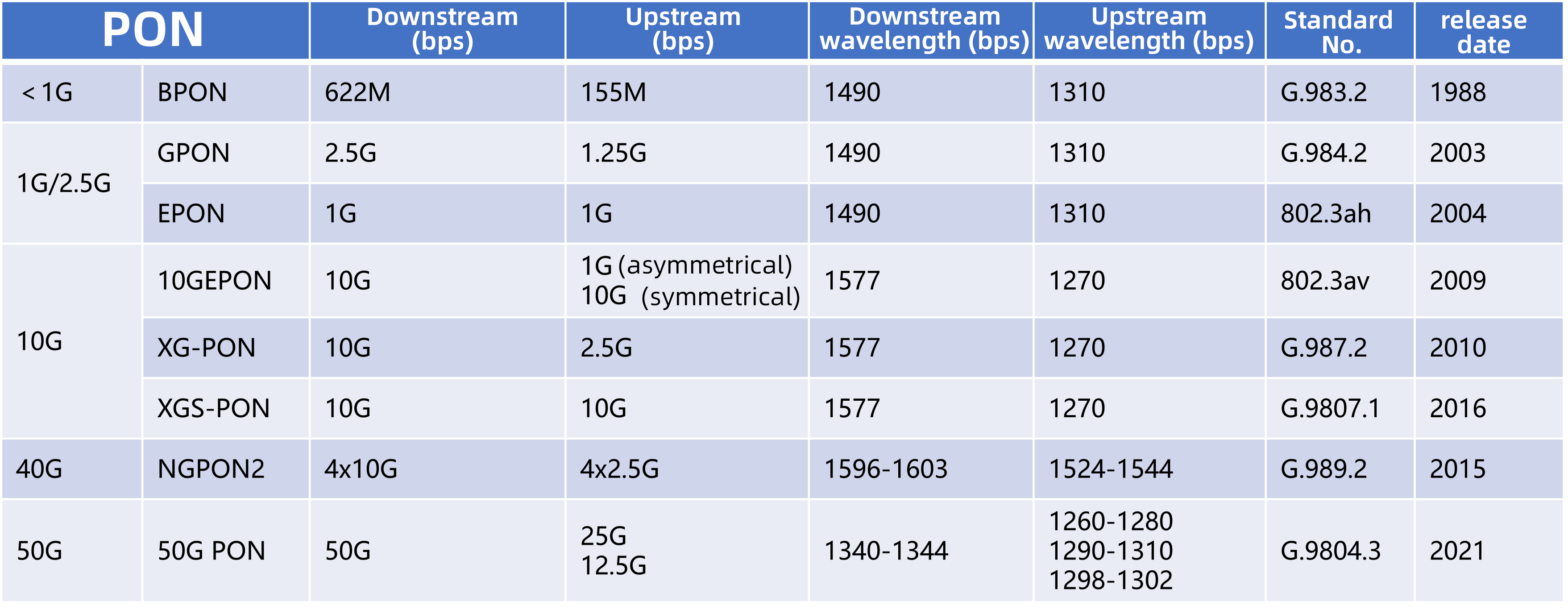 - Specific rates depend on whether it adopts GPON, EPON, or other substandards.
